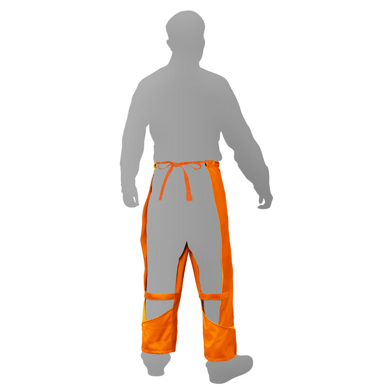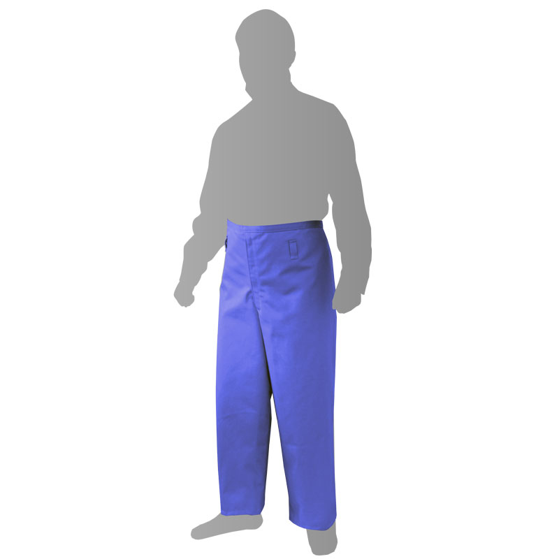 ズボン式前掛の足の後ろを面ファスナ留めにすることにより靴を履いたまま着脱しやすく、装着時間を短縮できます。