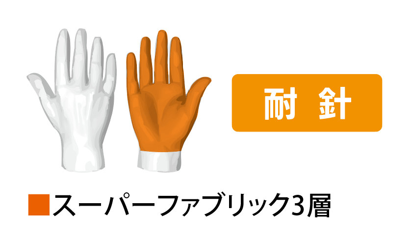 手の平・指先は耐突刺性に優れ、注射針、ガラスの破片、ワイヤーなど細く鋭利な物から手を守ります。